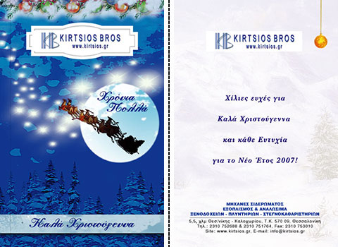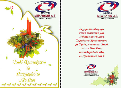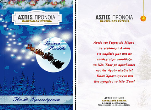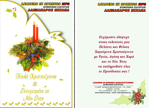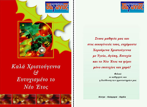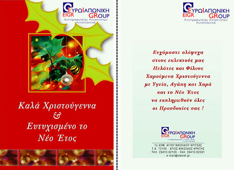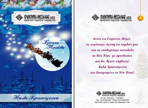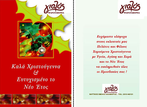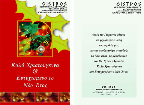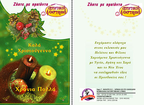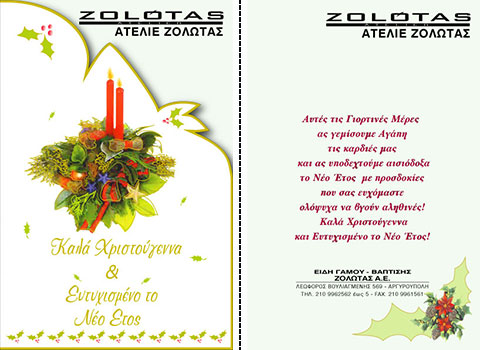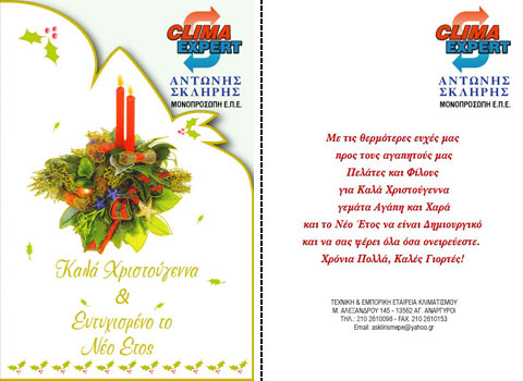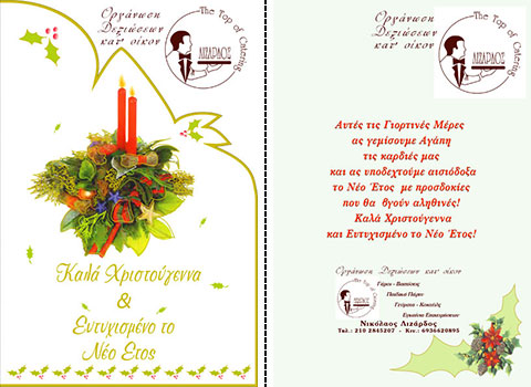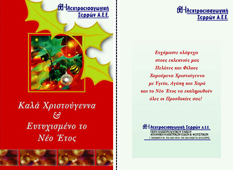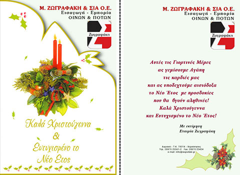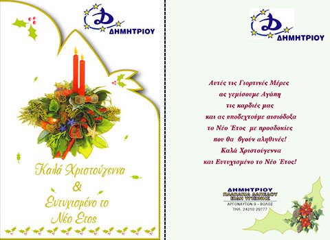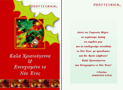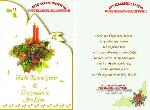 Επιλέξτε την κάρτα που σας αρέσει περισσότερο, και ζητήστε μας να τυπώσουμε την προσωπική σας ευχή, μαζί με την επωνυμία και τη διεύθυνση της επιχείρησής σας.